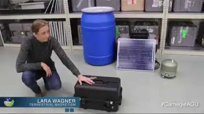 After many cumbersome field deployments, Lara Wagner and Diana Roman developed Carnegie Quick Deploy Box (QDB), which takes advantage of new technology improvements to make compact and cost-effective broadband seismometers, facilitating deployment during rapid response and large array situations. The box is small enough (~13"x13"x21") and lightweight enough (< 35 lbs) to be checked as airline luggage.