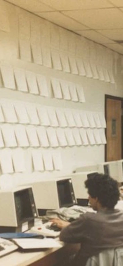 Snapshot of hardworking scientists at San Francisco State University with up-to-date computing facilities of the early 90s.
