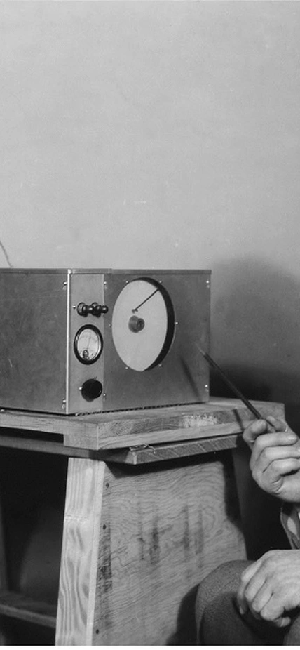 Image Caption: Oliver H. Gish with his electrical conductivity apparatus for the Explorer II manned balloon flight into the stratosphere in 1935. Image is courtesy of the Carnegie Institution for Science, Department of Terrestrial Magnetism.