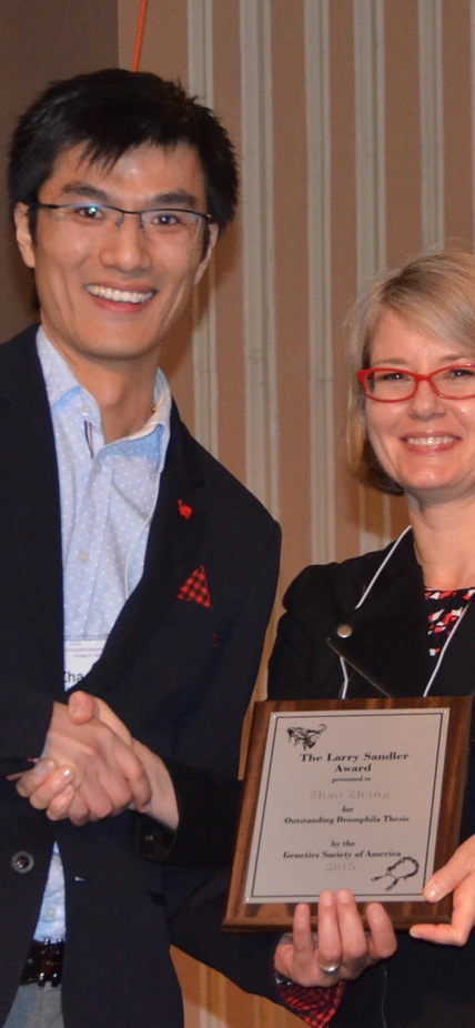 Baltimore, MD—The newest member of the staff at the Carnegie Department of Embryology, Junior Investigator Zhao Zhang, received the prestigious Larry Sandler Memorial Award at the 56th Annual Drosophila Research Conference of the Genetics Society of America in Chicago the first week of March. The annual award is given for the best research that led to a Ph. D. using Drosophila, the genetically tractable fruit fly that is employed in a wide range of biological and medical research.