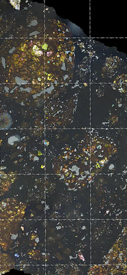 Top Image Caption: LaPaz Icefield 02342 seen here in thin section under polarized light courtesy of Carles Moyano-Cambero.
