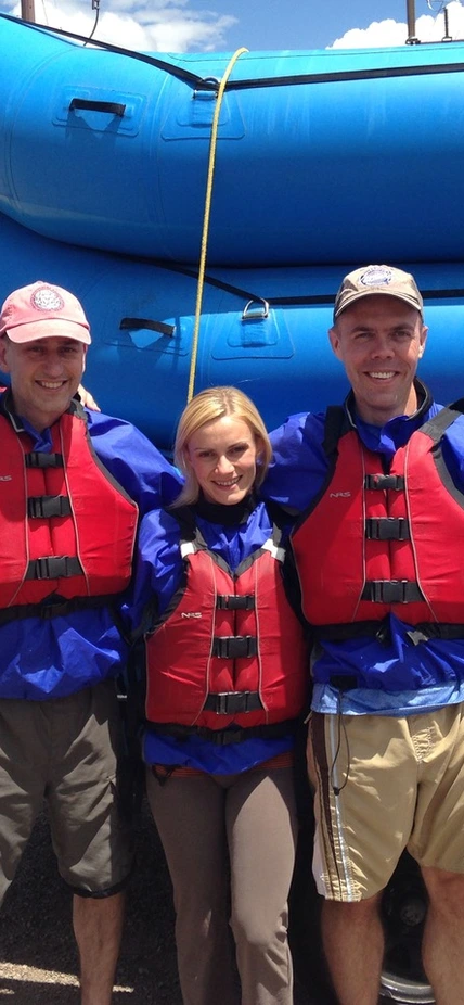 Image Caption: Pictured from left to right, are Steve Farber's graduate student Jay Thierer, Steve Farber, Rawls' former graduate student Ivana Semova, and John F. Rawls. They are on a rafting trip during a 2014 meeting “Molecular Mechanisms of Intestinal Lipid Absorption and Metabolism” held at Snowmass, CO.