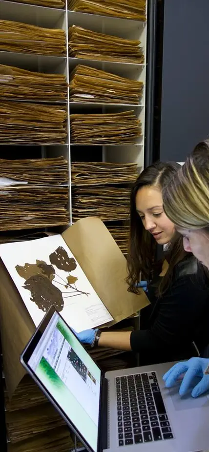 Top Image Caption: Robin Martin and Katie Kryston search the Spectranomics Library for a species. Photo by Greg Asner.