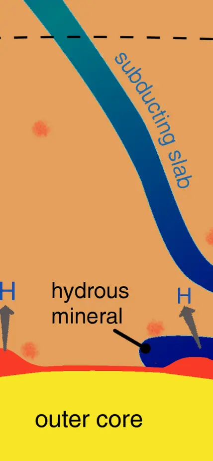Image Caption: This diagram shows the hydrogen cycling in the deep Earth. Image courtesy Qingyang Hu