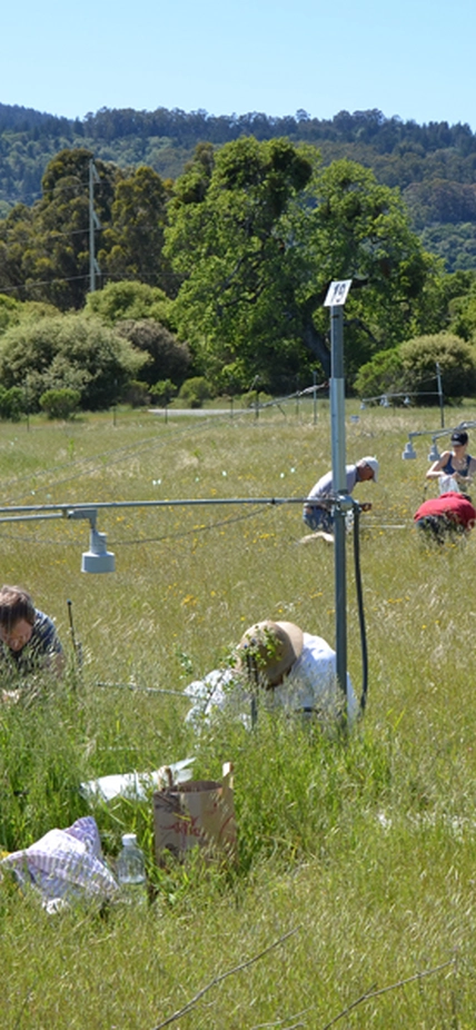 Image Caption: Participants in the Jasper Ridge Global Change Experiment sampled plots of the grassland ecosystem for 17 years. Image courtesy Nona Chiariello