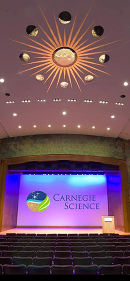 Our newly renovated hall has state-of-the-art audio visual and broadcast capabilities. The restoration preserved all of its beautiful, historic aspects. Carnegie' new logo captures the span of our science: Space, Life, Earth.