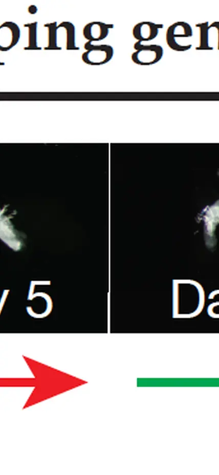 TOP IMAGE CAPTION: The team found that reproductive stem cells use a novel adaptive response to quickly tame the invading jumping gene elements by activating the so-called DNA damage checkpoint. That is a pause in the cell cycle, which allows for DNA repair. The images depict ovary morphology changes over time after jumping gene invasion, the DNA damage checkpoint pause, and the repair process that ensues after day four. Image courtesy Zhao Zheng