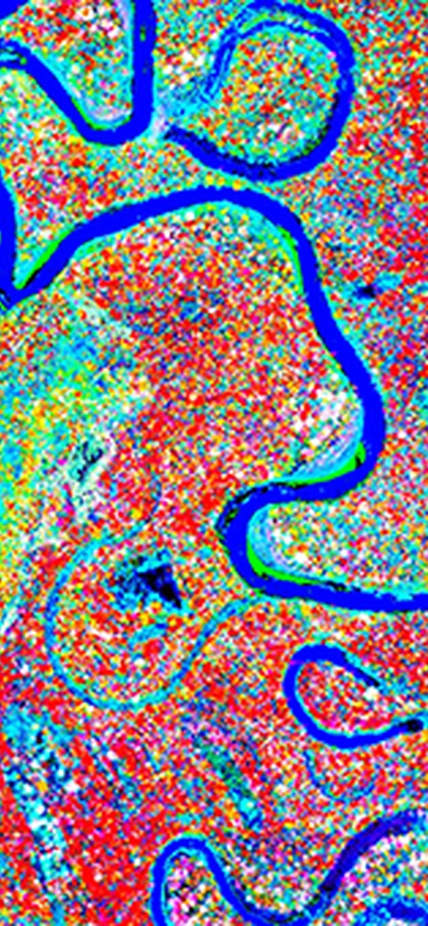 Image Caption: Although lowland Amazon forests look monotonously green from satellites, Carnegie scientists have discovered that they are actually arranged in chemically-distinct communities patterned by the soils and microtopography that underlie the forest. This Carnegie Airborne Observatory (CAO) image reveals floodplain forest canopies in red that are naturally packed with growth chemicals, as compared to forest canopies on neighboring terraces in yellow-green that are outfitted with fewer growth chemicals. These CAO maps explain the geographic pattern of carbon dioxide uptake in the lowland Amazon, and help to predict forest responses to climate change. Image is courtesy of Greg Asner.
