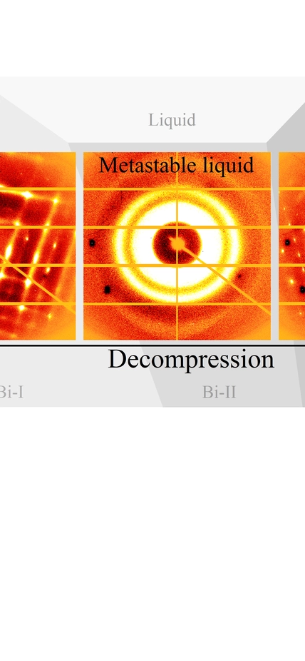 Washington, D.C.--Phase transitions surround us—for instance, liquid water changes to ice when frozen and to steam when boiled. Now, researchers at the Carnegie Institution for Science* have discovered a new phenomenon of so-called metastability in a liquid phase. A metastable liquid is not quite stable. This state is common in supercooled liquids, which are liquids that cool below the freezing point without turning into a solid or a crystal. Now, scientists report the first experimental evidence of creating a metastable liquid directly by the opposite approach: melting a high-pressure solid crystal of the metal bismuth via a decompression process below its melting point.