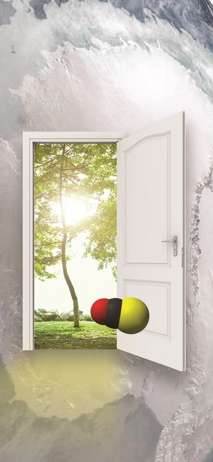 Caption: An artist’s conception representing this work. The concentration of the atmospheric trace gas carbonyl sulfide is influenced by the terrestrial biosphere’s photosynthetic activity and its variation over centuries is preserved in Antarctic snow and ice, which provides insight into the response of key process to climate and environmental change. Image credit UC Merced and NASA.