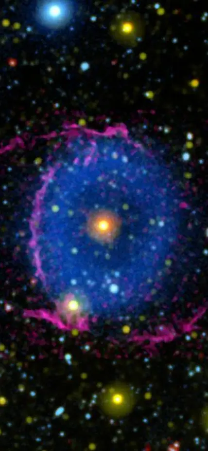 Sixteen years ago, NASA’s Galaxy Evolution Explorer (GALEX) spacecraft discovered a large, faint blob of gas with a star at its center—an object unlike anything previously seen in our Milky Way galaxy. The blob is represented as blue in the ultraviolet images of GALEX—although it doesn't actually emit light visible to the human eye—and careful observations identified two cones of gas ejected from the system that when viewed from our perspective on Earth looks like a ring, resulting in the object being nicknamed the Blue Ring Nebula.