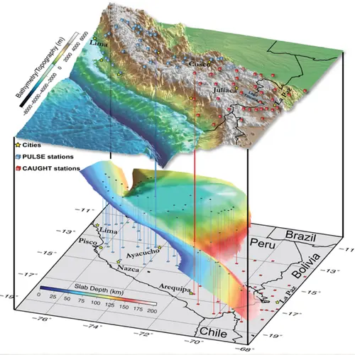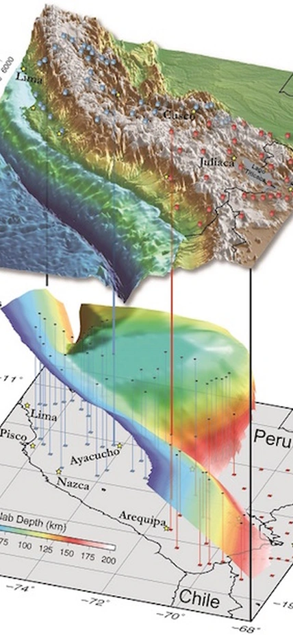 Although scientists knew that a flat slab existed in this region, much about how and when it was formed has remained a mystery. Using an array of seismometers placed over the region of flat-slab subduction, the team was able to image the structure of the subducted plate in unprecedented detail. This allowed the team to study the evolution of the Peruvian flat slab over time and to better understand the forces that created and sustain it.