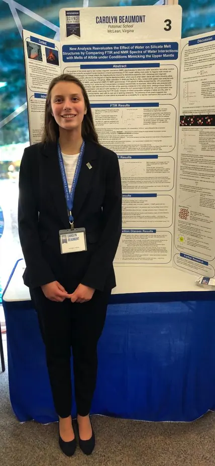 Carolyn Beaumont, a senior at the Potomac School in McLean VA, won 5th place in the 78th Regeneron Science Talent Search. During the summer of 2018, she worked with Geophysical Laboratory staff members George Cody and Bjorn Mysen on a project to shed light on the molecular details of how water interacts with silicate melts. During her time, she learned how to run all aspects of the experiment, including how to operate a piston cylinder pressure apparatus that generates pressures on the order of 1.5 GPa and temperatures in excess of 1400°C. She also used molecular spectroscopy and nuclear magnetic resonance spectroscopy, to obtain detailed molecular information on glass samples. She will be attending Harvard University in the fall where she plans to study mathematics or the physical sciences.
