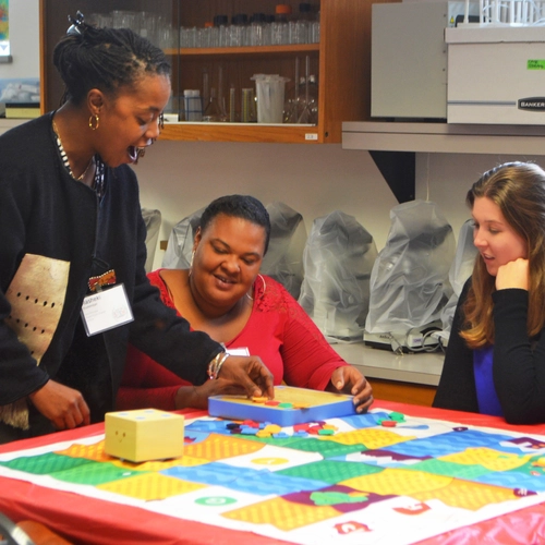 Attendees pose on the "red-shift carpet" at the Carnegie Observatories Open House. January 02, 2018 Campus News 16th Annual Open House Celebrates our Past, Present, and Future