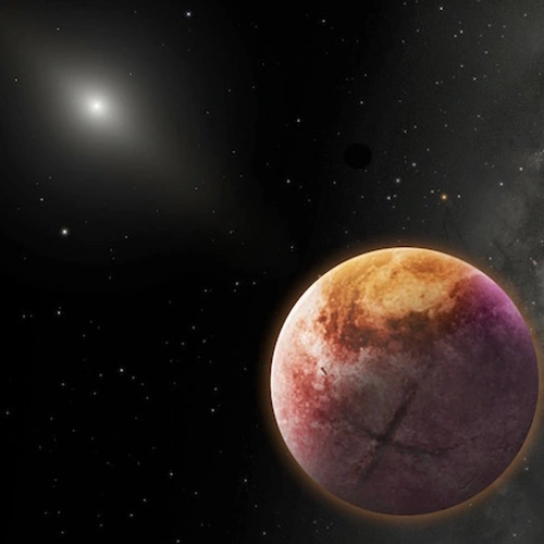 Working with magnesium germanate, Mg2GeO4, analogous to one of the mantle’s most abundant silicate minerals, the team was able to glean information about the potential mineralogy of super-Earths and other large, rocky exoplanets. Under about 2 million times normal atmospheric pressure a new phase emerged with a distinct crystalline structure that involves one germanium bonded with eight oxygens. The new eight-coordinated, intrinsically discorded mineral is expected to strongly affect the internal temperature and dynamics of these planets. Illustration is courtesy of Rajkrishna Dutta.